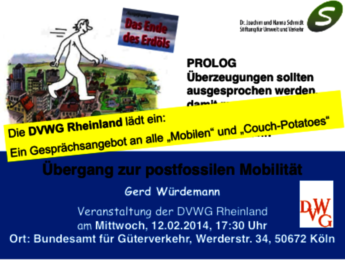 Bundesamt für Güterverkehr, Werderstr. 34, 50672 KölnReferent: Gerd Würdemann (ehem. Bundesinstitut für Bau-, Stadt- und Raumforschung (BBSR))
