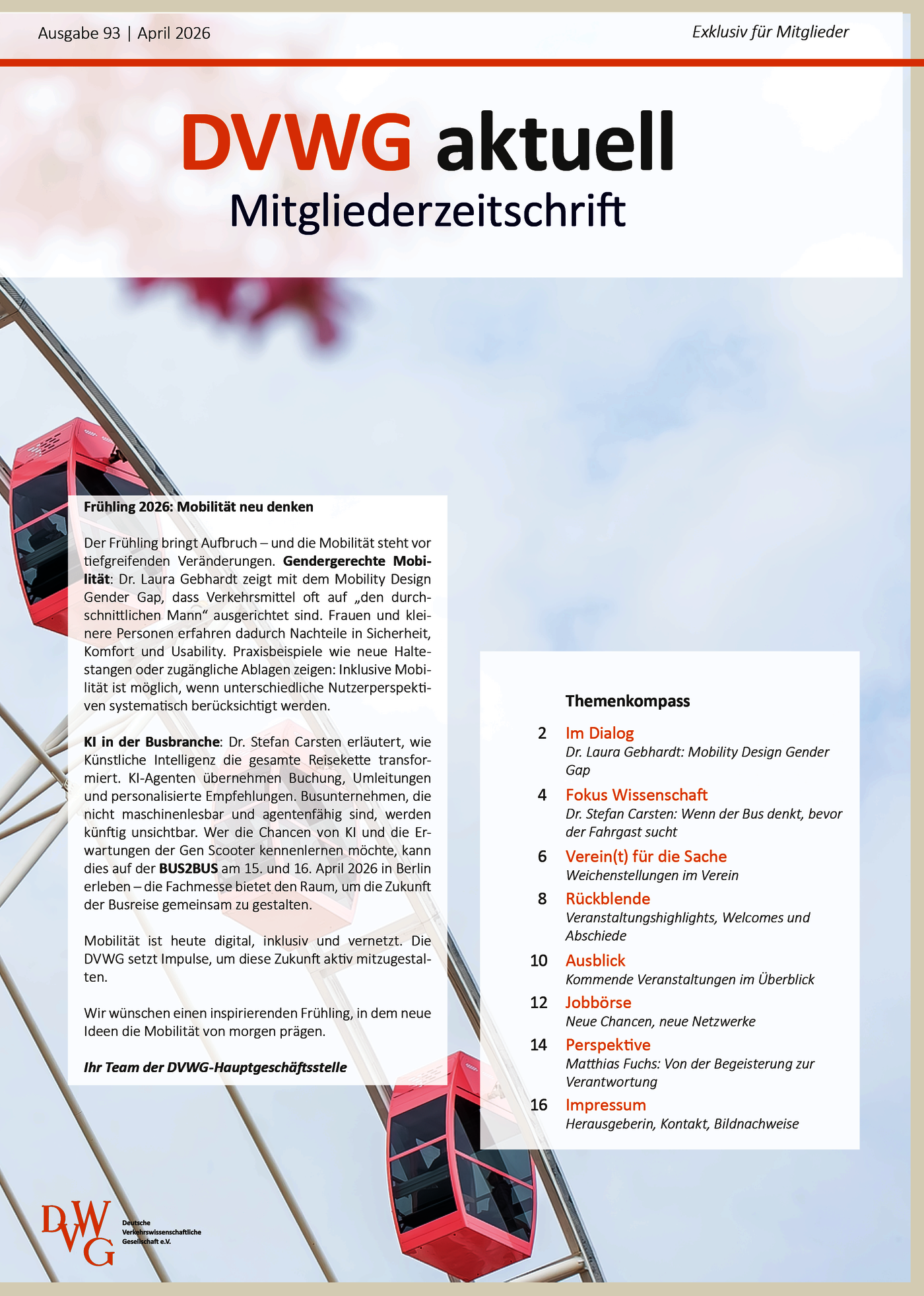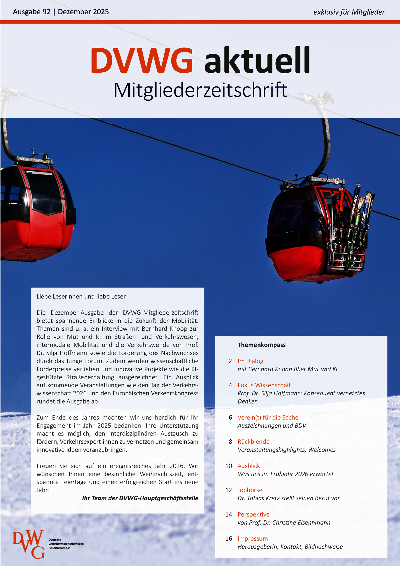 DVWG aktuell ist mehr als eine Mitgliederzeitschrift – sie ist der Kompass für alle, die sich für Mobilität und Verkehr interessieren, beruflich wie wissenschaftlich.